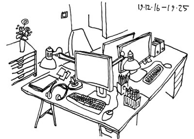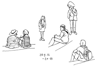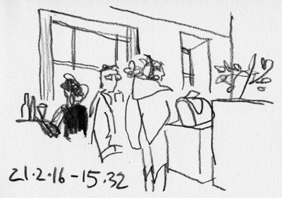 In simple sketches moments of the day were captured: